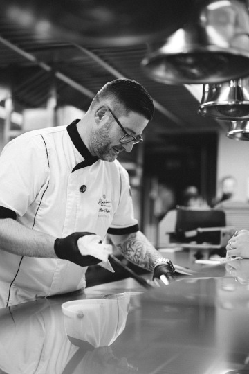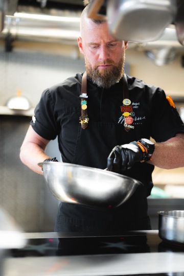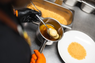 Vanilia vodka, Passoa, fresh orange juice, vanila sugar, passion fruit, Prosecco