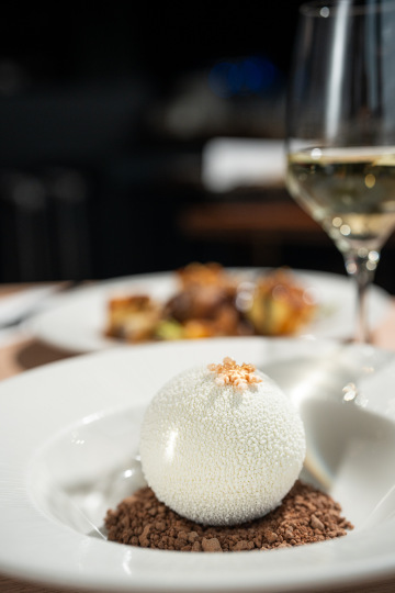 Coconut ball, eggnog, dark chocolate